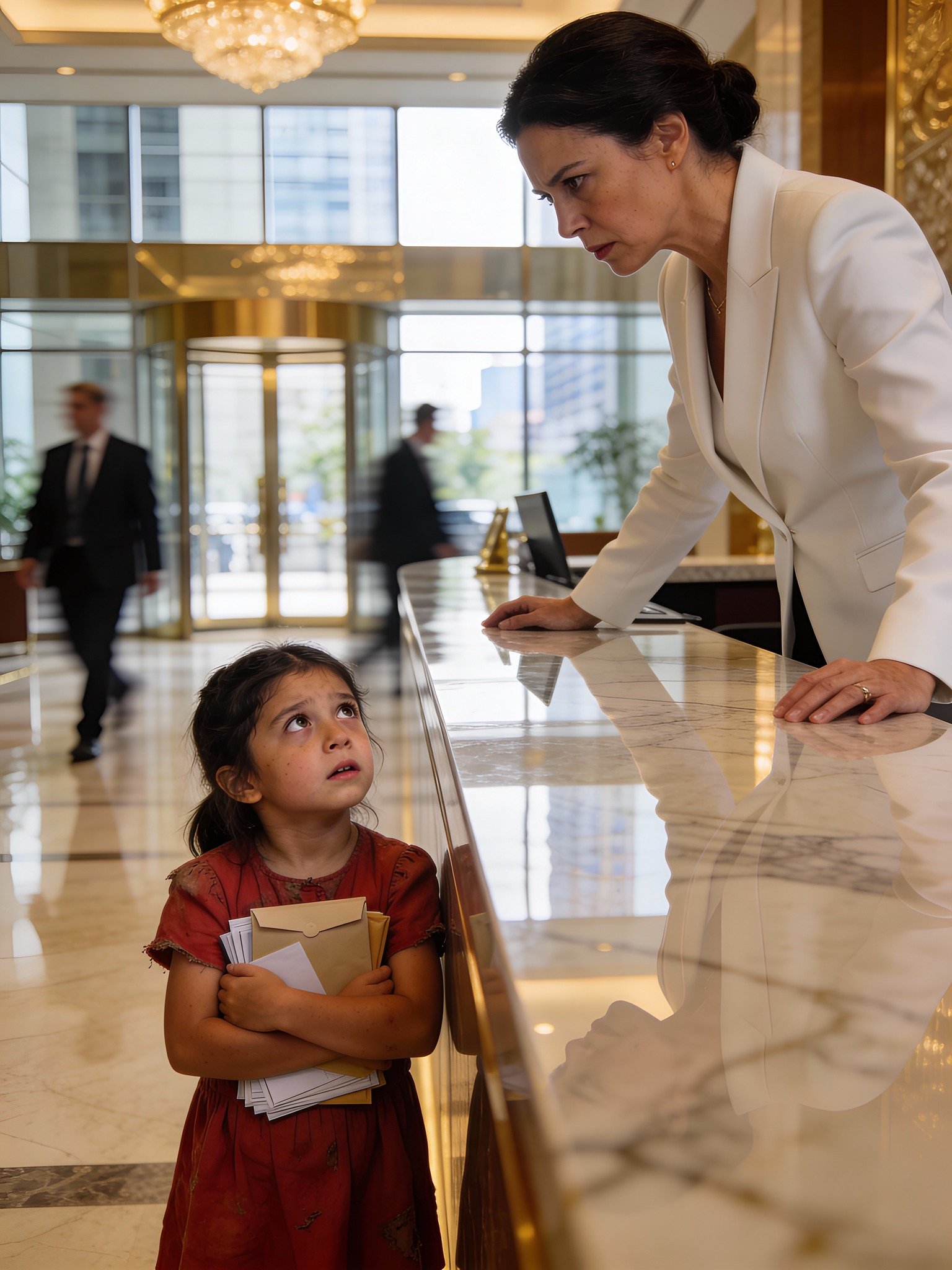 A seven-year-old girl crosses the city alone and enters the lobby of a tech giant: she brings a “very urgent” crumpled letter and whispers that