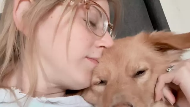 Just one day after Sunny’s persistent warnings began, Kenzie received a shocking medical diagnosis: she had a brain aneurysm. This condition, a bulge in a blood vessel in the brain, can be asymptomatic until it ruptures, often causing a hemorrhagic stroke. Kenzie later shared a now-viral video of Sunny resting her head on her shoulder, captioning it with the story of how her dog’s behavior preceded the frightening diagnosis. For Kenzie, this wasn’t Sunny’s first act as a furry guardian; the dog had previously shown sensitivity to Kenzie’s chronic leg condition, demonstrating a recurring, almost uncanny ability to detect physical distress.